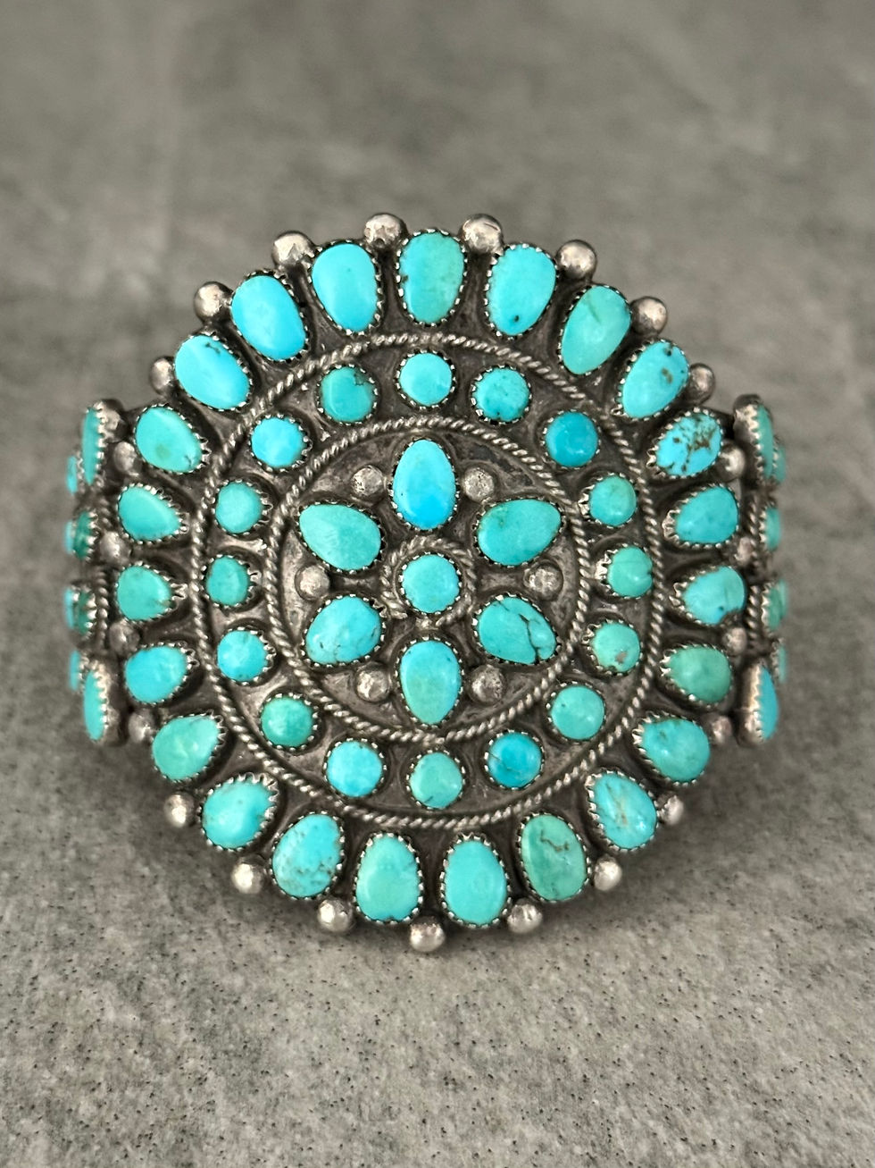 Vintage Native American NAVAJO Petit point Turquoise Cluster Sterling Bracelet